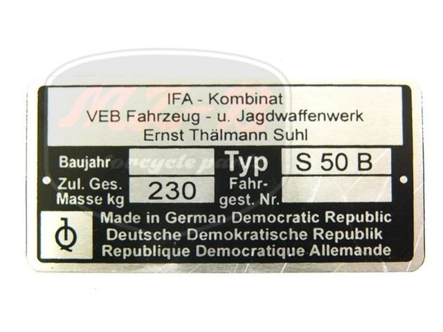 SIMSON 50 TÍPUSTÁBLA /S50B/