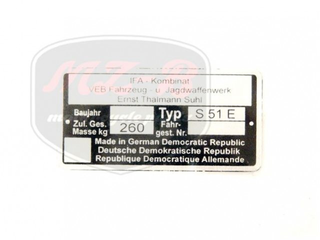 SIMSON ENDURO TÍPUSTÁBLA /S51 E/